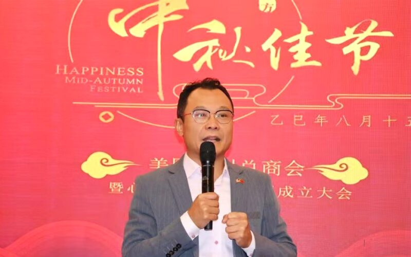 美国华人华侨联合总会会长蔡成华致词表示,首先祝大家中秋快乐。多年来,美国温州总商会在李信亮会长带领下,默默耕耘,为洛杉矶与温州之间的经贸往来积极奉献,为温州企业家出海护航,做出卓越成缋,有目共睹。而总商会会员企业-心巢地产建筑服务集团又正式启航,这是美国温州总商会连动会员企业的又一可喜成果,值得赞扬。愿总商会越办越大,越做越好。