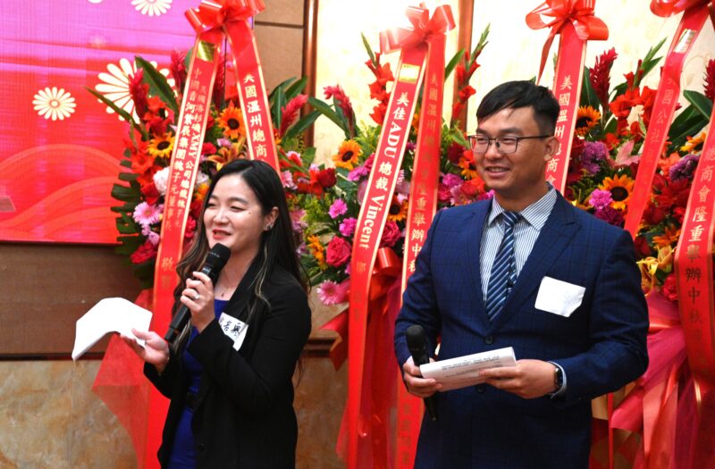 美国温州总商会秘书长蔡洲(右)、美国温州总商会理事长、法律顾问佘若涵(左)主持盛宴