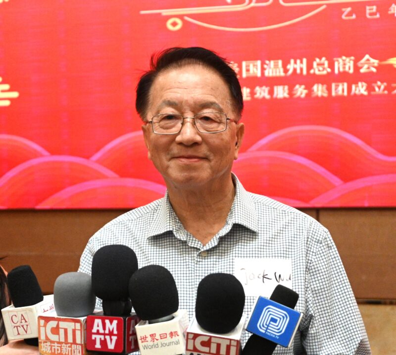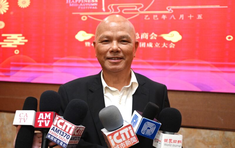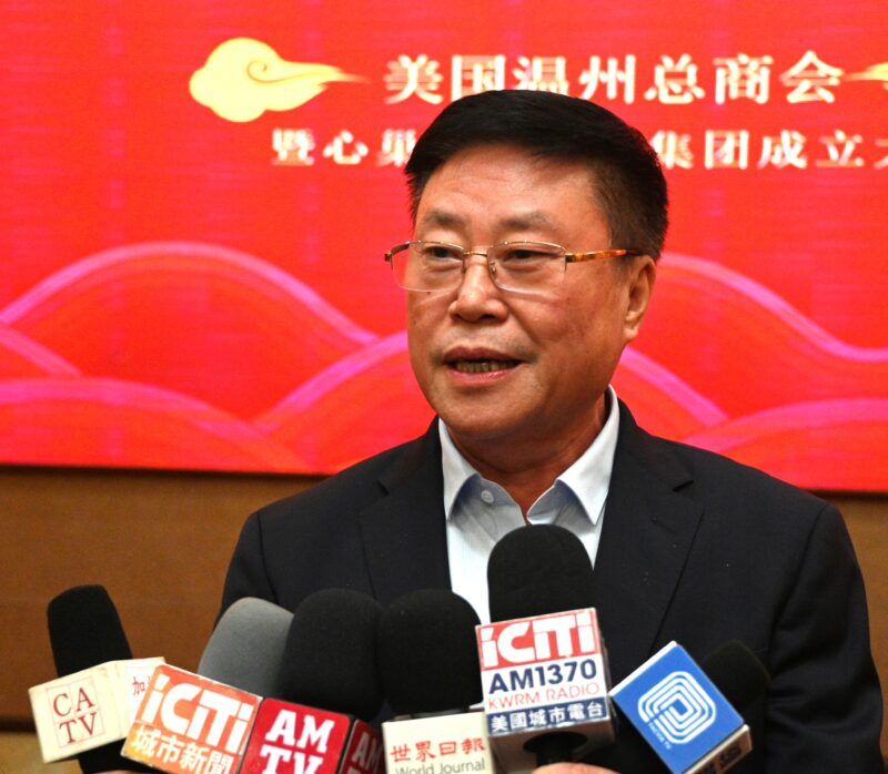 美国温州总商会会长李信亮接受各大媒体记者访问