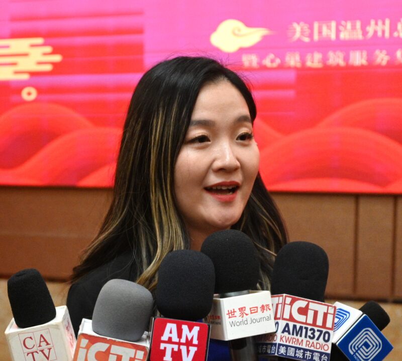 美国温州总商会理事长、法律顾问佘若涵接受各大媒体记者访问