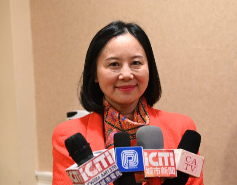 加州企业家联盟主席、川渝总商会会长陈慧碧接受各大媒体记者访问
