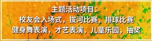 野餐会由入场式、拔河比赛、排球比赛、健身舞与才艺表演、亲子乐园、特色美食、幸运抽奖、校友会和俱乐部特色展位活动等环节组成。亲子乐园设有儿童城堡、脸绘、手工、套圈等趣味项目,我们还请到了有名的九拍鼓手学院前来表演然后带领Drum Circle 活动。餐饮方面,现场将提供包括烤全羊、山东煎饼等少量特色摊位。本次活动奖品超过六百份,大奖为中国南方航空公司提供的中美往返机票。现场将推出特色展位:北京大学南加校友会有招牌烤全羊(需要提前预定),北京理工大学南加校友会邀请白马寺正骨传承人徐林宝现场义诊,南京大学南加校友会将组织掼蛋活动,园艺俱乐部设有以物易物的农夫市场, 山东大学南加校友会邀请山东石磨煎饼到现场制作煎饼果子,同时也将设立“高校校友单身联谊站”,欢迎单身校友及校友二代进行联谊。