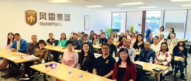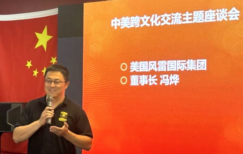 风雷集团董事长冯烨在发言中概述了公司发展的大事记和新动向以及未来的愿景。在风雷集团,参会者看到了创刊于1978年的《华人》杂志,2025年第六期的封面故事详细报道了风雷集团董事长冯烨和总裁王明明的跨境物流传奇 – “风雷”疾行十五年,这是该刊特约编辑傅琨同时用中文和英文写的专访文章,包括逐梦起点、砥砺前行、文化凝聚、时代担当、未来蓝图,读者可以看到他们夫妇在美国比翼齐飞的奋斗历程,从白手起家创立风雷国际集团到成为行业标杆,是非常励志的创业故事。