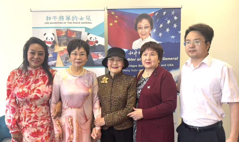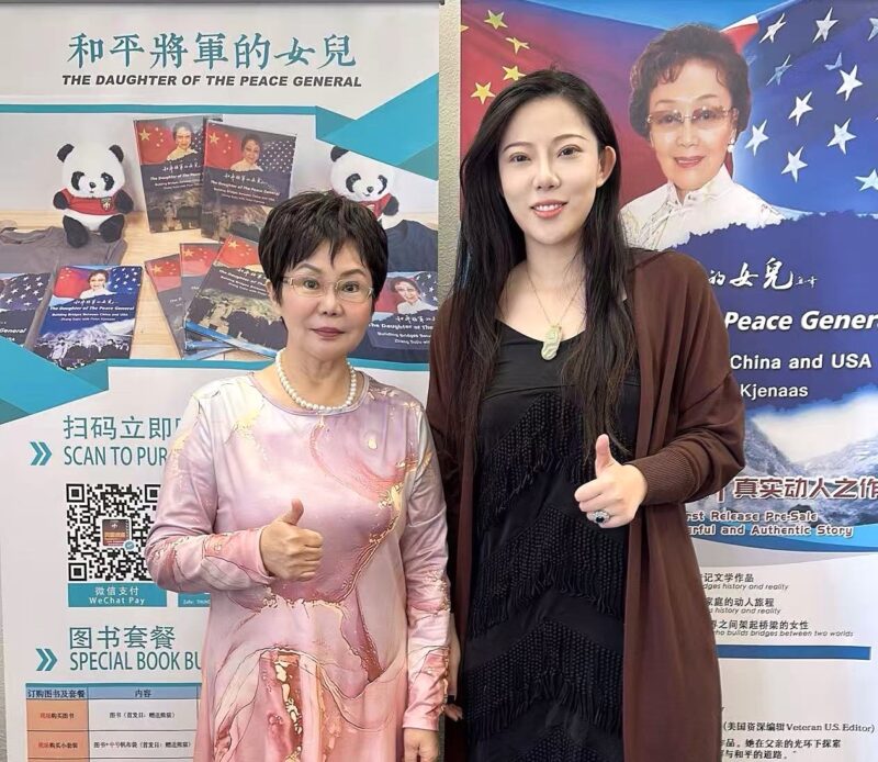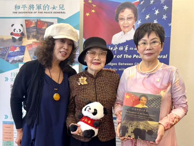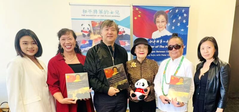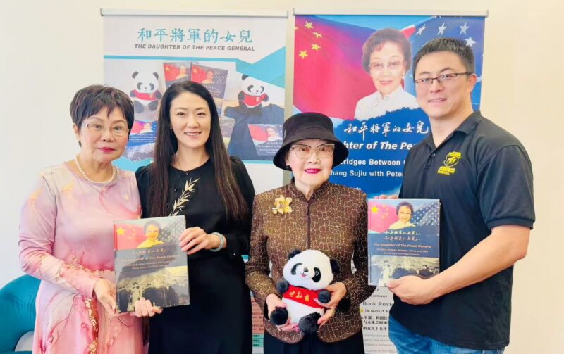 美国著名侨领、美国华人社团联合会荣誉主席张素久致辞感谢大家支持和购买她的回忆录,鼓励大家都书写自己的故事,留下历史记录,这也是文化传承的一种方式。上个月张大姐在北京天安门城楼上观看了九三抗战胜利纪念日大阅兵。奉商美国总会主席朱俊英展示和介绍了张大姐的自传新书,还介绍了奉商总会将在10月28日开启的为期三天的十周年庆典活动。美国风雷国际集团不仅为活动提供了场地和设备,给每位参会者赠送了可爱的熊猫玩偶作为伴手礼,还提供了20多本张素久大姐的自传新书《和平将军的女儿》供大家抽奖,将活动推向一个激动人心的高潮,与会者纷纷拿着新书与九十高龄的作者张大姐合影留念。