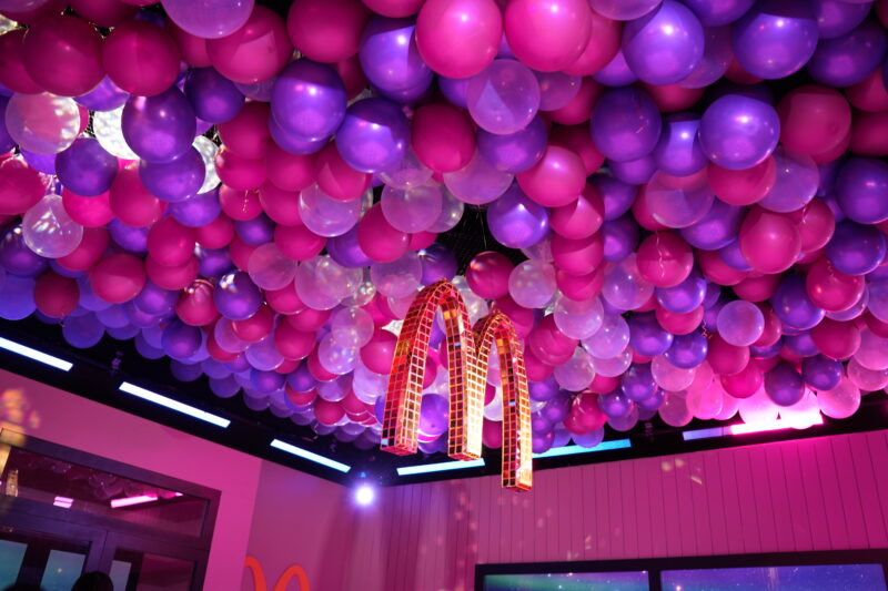 为庆祝新品上市,麦当劳于 9 月 26 日至 27 日在洛杉矶好莱坞举办了为期一个周末的快闪活动。活动现场设置了多个互动区域,宾客们可以领取印章集结卡,通过完成不同任务获得印章并兑换限量礼品。现场活动包括玩抓娃娃机、在拍照亭拍摄纪念照、在迪斯科舞池尽情舞动等丰富体验,让粉丝们仿佛置身于充满欢乐与惊喜的 BTS 世界。