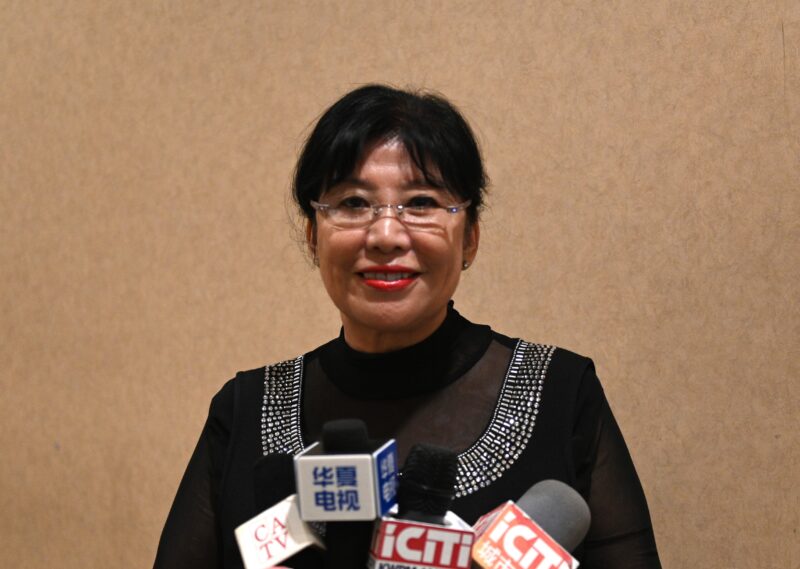 美国南加州华人社团联合会理事长江风年接受各大媒体记者访问