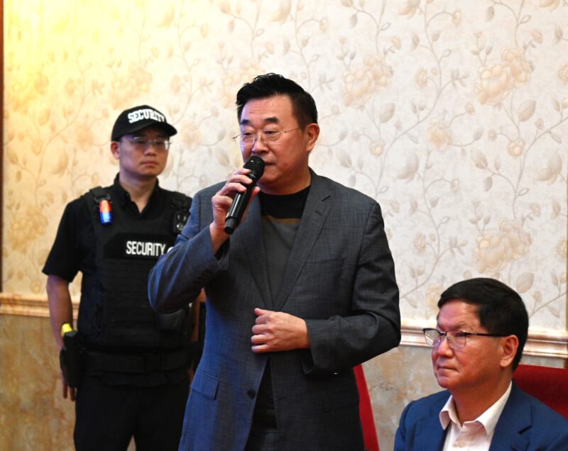 左起:美国大连总商会创会会长、卓尔财富集团创始人Lesley Jen、潘镭(Richard)会长致辞