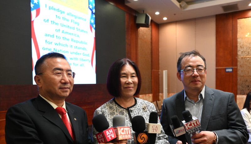 右起:潘镭(Richard)会长、郭兰主席、赵云龙博士接受各大媒体记者访问