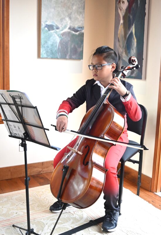 「光之冥想」系列艺术展上,小音乐家Allfa Chen大提琴演奏,小钢琴家Jason Shen弹奏表演,给艺术展带来幽雅美妙艺术氛围。