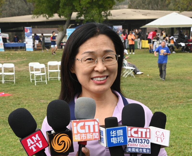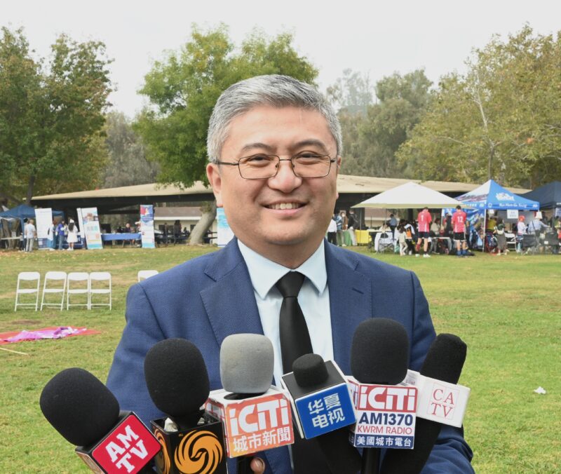 南加高校联盟会长兼本届活动组委会主席刘国云接受各大媒体记者访问