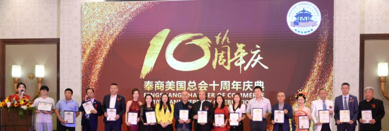奉商美国总会主席朱俊英在致辞中介绍了为期三天的系列庆典活动:28日上午举办了Home Co成立20周年暨会馆乔迁仪式,当晚举行十周年庆典晚宴;29日下午开设税务、金融专题讲座由税务专家Michael Ye和金融博士刘毅主讲,晚间呈现Home Co专场音乐会;30日下午举办”HomeCo杯”掼蛋邀请赛,当晚将举办庆功宴。朱俊英主席强调,商会十年成长离不开社会各界的鼎力支持,未来将继续秉承”奉与爱”的核心精神,凝聚全球奉商力量,深耕中美交流合作,致力于打造百年商会基业,书写更辉煌的发展篇章。