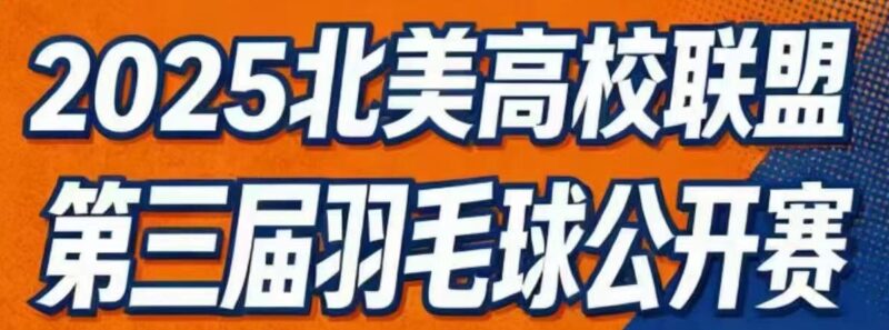 2025北美高校联盟第三届羽毛球公开赛主办单位:北美高校联盟;承办单位:北美高校联盟羽毛球俱乐部、加州天使之羽羽毛球俱乐部、青岛大学北美校友会、天津城建大学北美校友会、南京农业大学北美校友会;协办单位:华纳物流(许向荣)、罗兰岗茶话弄奶茶店、Golden Harvest Foods Inc.特别感谢三家公司/个人对赛事提供的全程赞助与协助,使本届公开赛更加圆满成功。