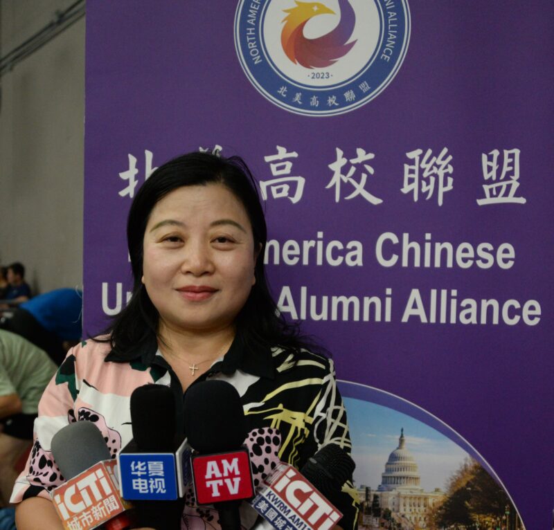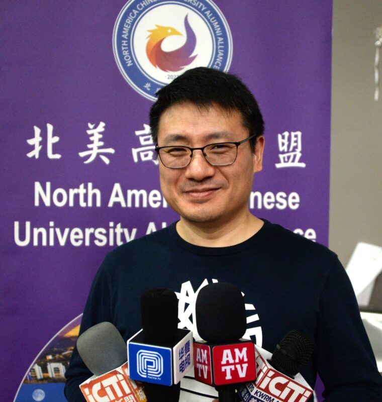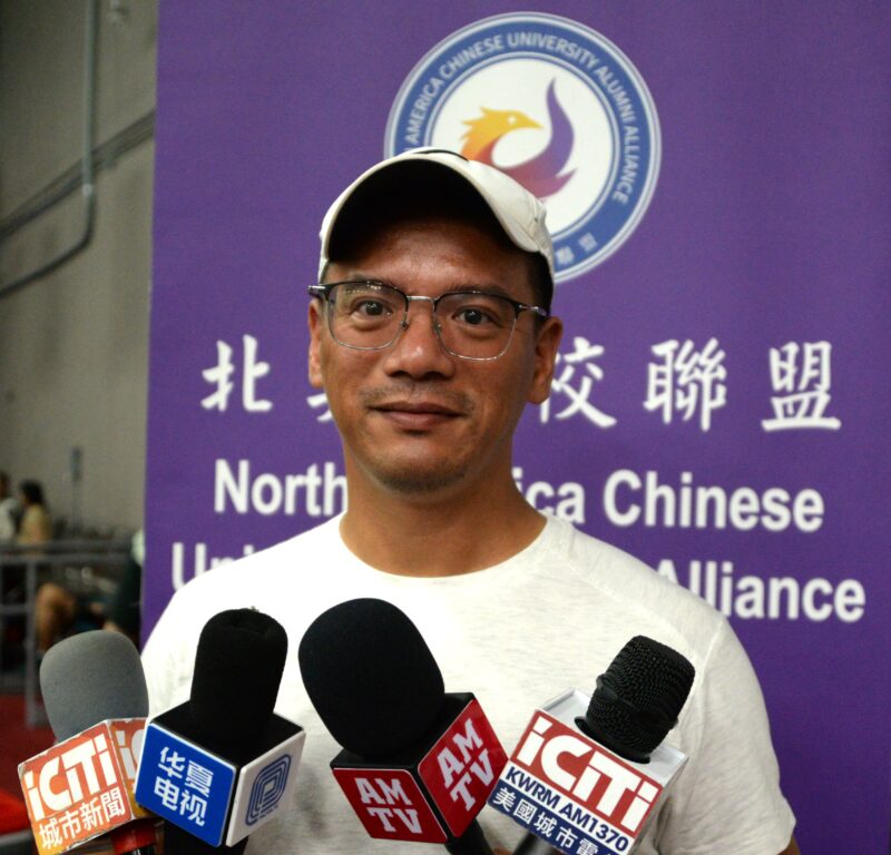 北美高校联盟主席陈峥宣布比赛开始,并接受各大媒体记者访问