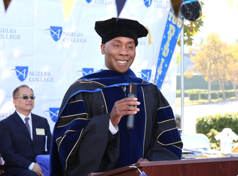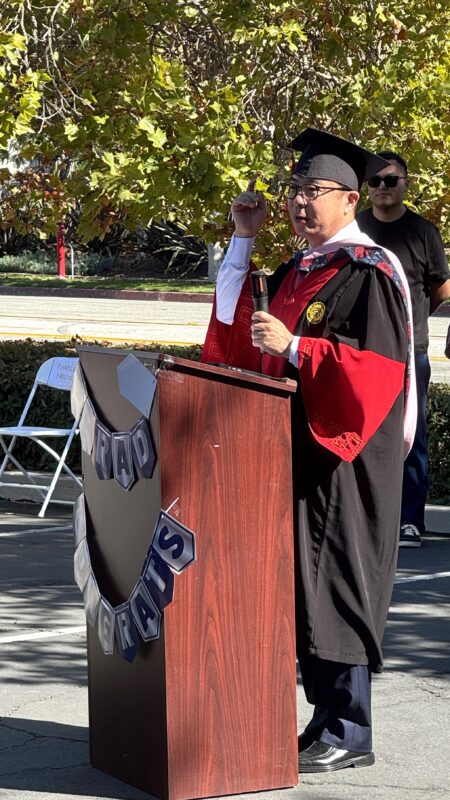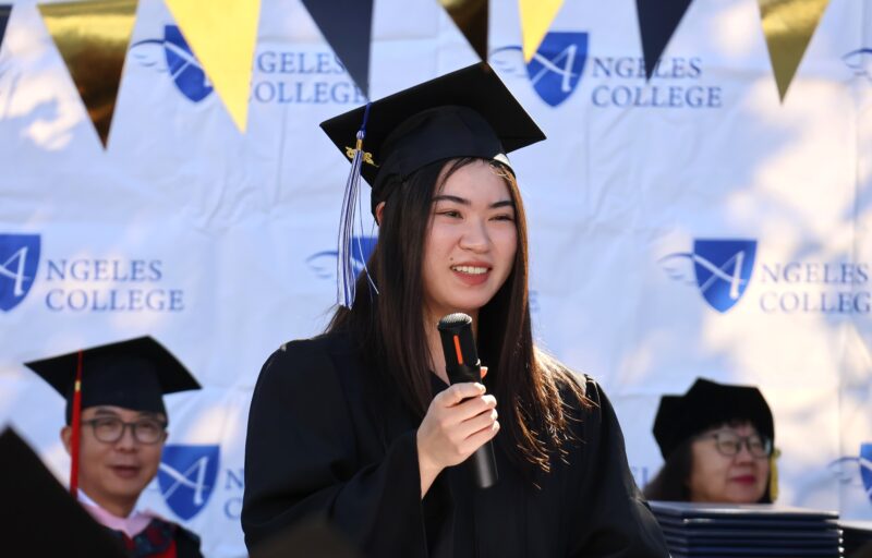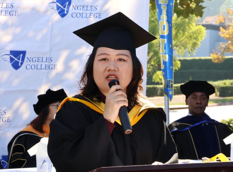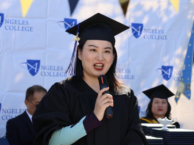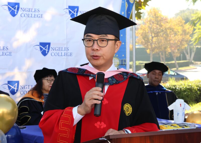 核桃市副市长伍立伦(Allen Wu)出席致辞,向全体毕业生表示诚挚祝贺,并高度肯定天使护理学院在南加州护理教育领域的卓越贡献。他特别赞扬学院长期以来秉持的“专业、关爱、责任” 教育理念,培养出一批又一批具有国际视野与专业精神的双语护理人才。