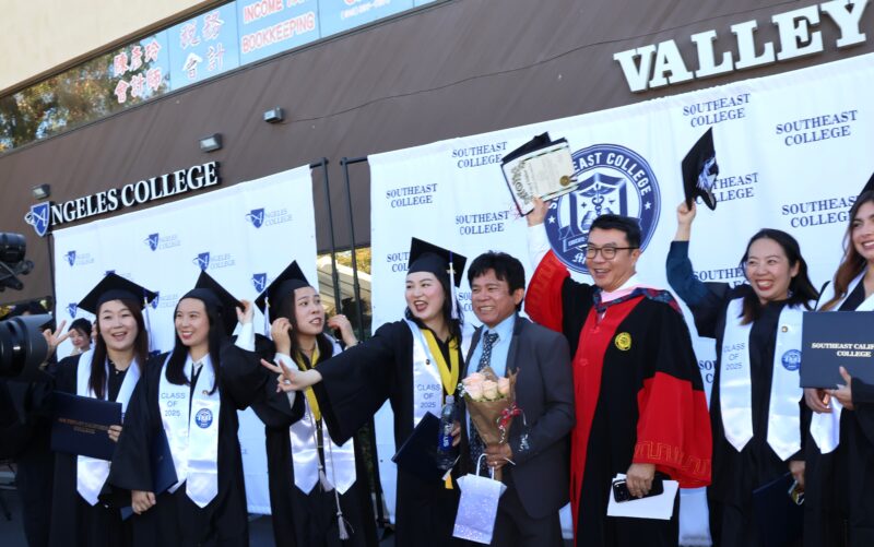 城市新闻 11 月 7 日工业市报道,天使护理学院(Angeles Nursing College)2025 届毕业典礼在工业市校区隆重举行。来自学院三大校区及南加州多家医疗机构的代表、教育界嘉宾与毕业生家属齐聚一堂,共同见证这一充满荣耀与感动的时刻。现场气氛热烈,掌声与祝福声此起彼伏。