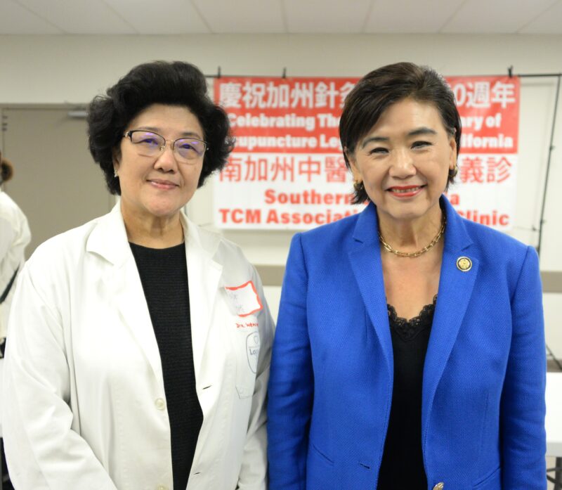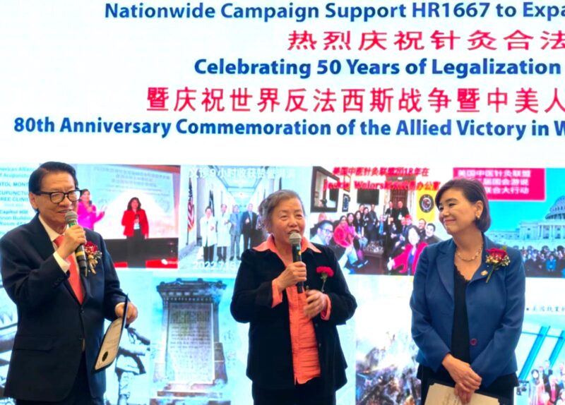 右起:美国国会议员赵美心、加州中医政治联盟主席刘美嫦、加州针灸委员伍国庆