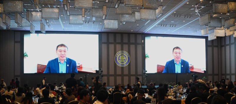 阳明交大前校长张懋中携夫人亲临现场致辞。他回顾了阳明交大在台湾新竹复校的历史,提及在台湾的兄弟院校对交大复校的支持,分享了交大在台湾芯片产业人才培养与AI领域产生的全球影响力,使校友们深感交大荣光。