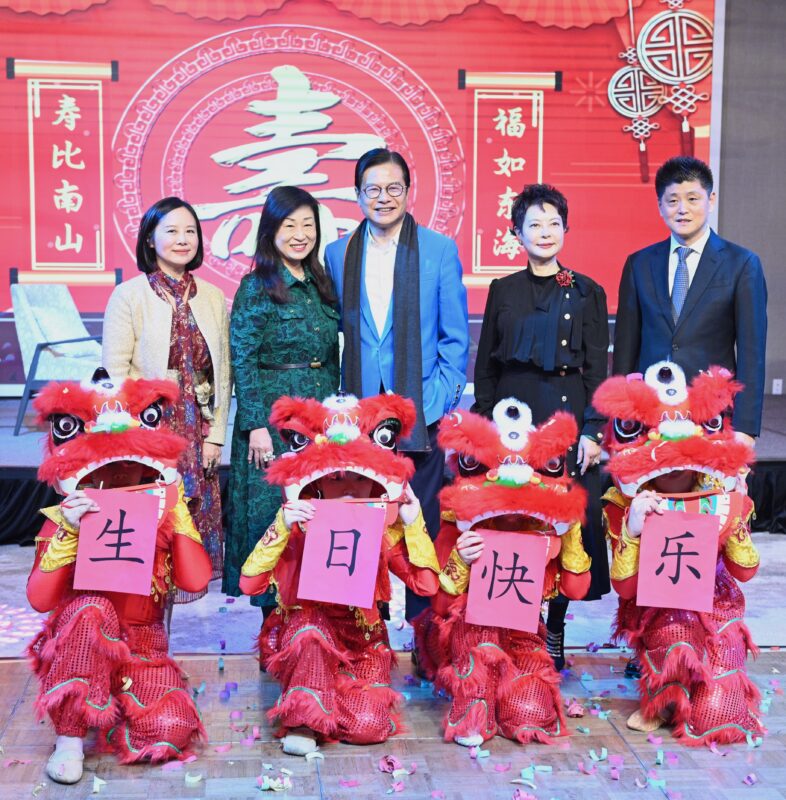 张勇主席代表全场向林日升博士送上诚挚的生日祝福。美华总荣誉主席熊文胜、美华联荣誉主席赵洪民、理事长江风年也表示,在张勇主席带领下,美华联团结奋进,成绩斐然,并祝愿侨界活力越来越足,合作硕果累累。