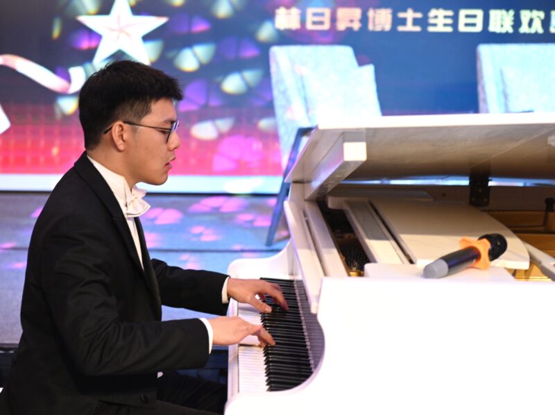 林日升博士偕夫人马绮冰喜切生日蛋糕