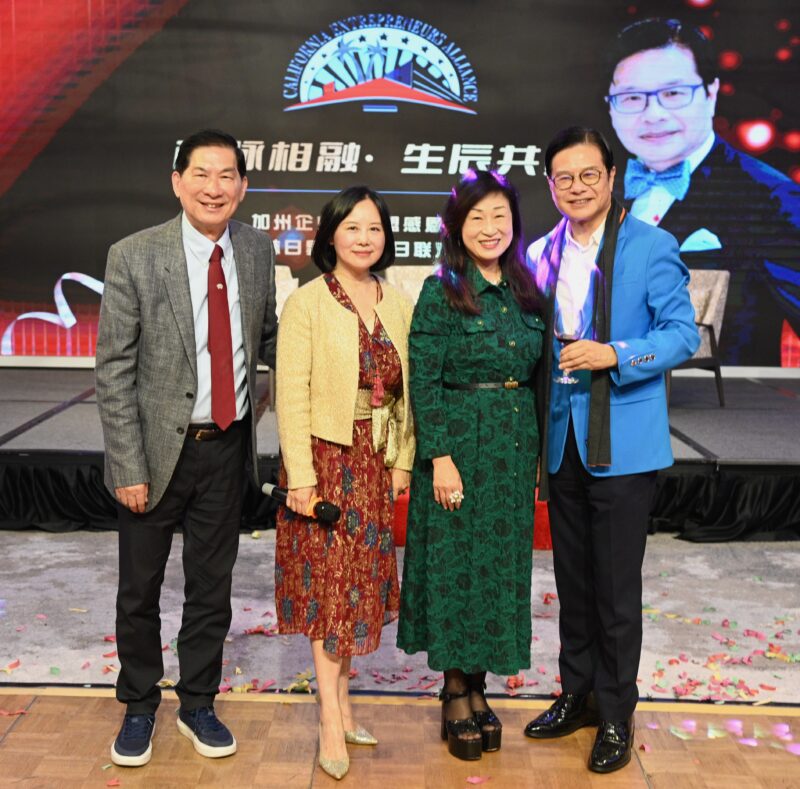 美国华人社团联合会核心领导张勇、陈慧碧、林日升、郭颂、赵洪民、熊文胜、江风年、赵林、许承武、林连连及美国南加州华人联合总会荣誉会长熊文胜等登台亮相,他们先后致词表示,此次活动不仅是一次温馨的感恩聚会,更是侨界企业家凝聚智慧、探讨合作、共谋发展的交流会。
