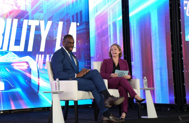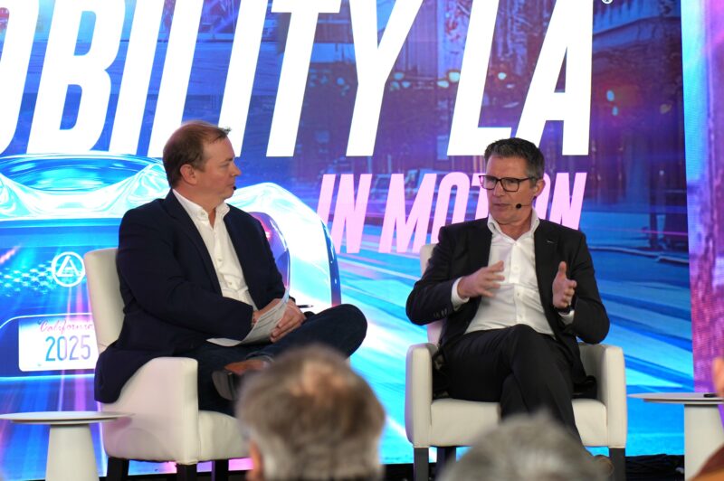 当天中午,加州交通厅长托克斯·奥米沙金(Toks Omishakin)登台发表讲话,聚焦行业当前议题。在访谈中,他强调政策层面对汽车产业的支持。他指出,加州是清洁能源车辆的领先者,零排放车型占比已从24%增长至29.1%,全州道路上共有约210万辆清洁车辆。他鼓励整车厂(OEM)持续投资电动车市场,并指出CalTrans目前拥有超过12,000辆车辆车队,在他上任时仅有5–6%为零排放车型,而随着今年Rivian的订单,这一比例将增长至18%。