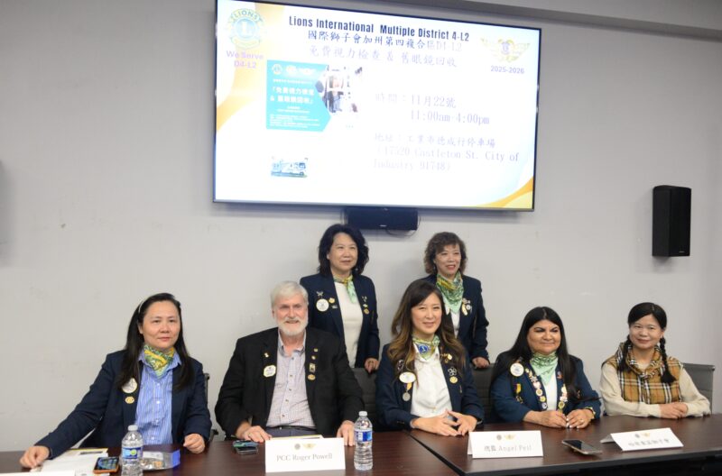 城市新闻11月20日艾尔蒙地市报导,国际狮子会加州复合区MD4-L2总监裴映棋(Angel Peil)在洛杉矶侨教中心举行的新闻发布会上宣布:国际狮子会加州复合区MD4-L2举办「免费视力检查及旧眼镜回收」将于本周六11月22日 中午11:00AM – 3:00PM在工业市德诚行停车场(17520 CASTLETON ST,CITYOF INDUSTRY, CA 91748)登场,FREE VISION SCREENING,先到先检查,欢迎16岁以上成年人踊跃前往参加。手机登记报名:626-838-4999 JASON LIN;626-252-7668;WILY YOUNG; 626-715-1171 CINDY LEUNG。Hillside专区主席何沛嫄(Iris Ho)主持新闻发布会。