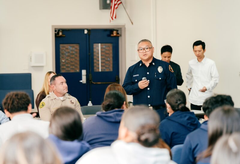 洛杉矶县警长部门(LA County Sheriff’s Department)与洛杉矶县消防局(LA County Fire Department) 分别作专业演讲,向学生讲解执法与救援体系的实际运作、青年参与途径与专业训练,也分享了真实案例,使学生从专业角度理解公共安全职业的使命与责任。学生纷纷举手提问,现场反应热烈。