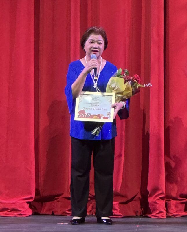 2025感恩节盛会充分体现华协「服务社区、光芒凝聚、发放⼤爱」的核⼼精神。透过丰富多彩的表演和青年参与,展现了华协对⽂化薪⽕相传和社区关怀的承诺。晚会中特别向前会⾧Gina Guo 郭、陪伴华协22年的资深会员郑令好颁发奖状,以表彰他们对社区的卓越贡献。