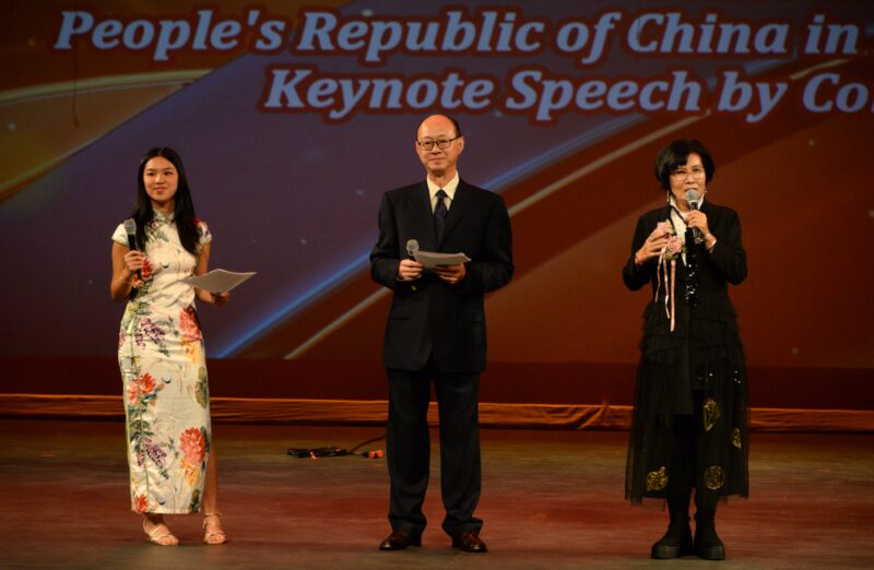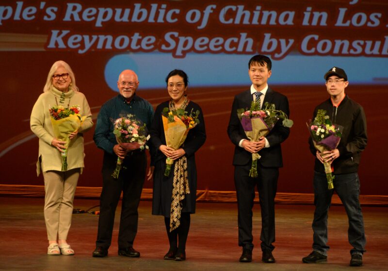 典礼由三位主持⼈开场,Andrew Liu 代表会⾧廖伟民博⼠致词,Chino Hills 市⾧ PeterRodgers 与王琦领事依序致辞。晚会最后由华协总监李关慧娟(Quyen Lee)温暖致闭幕辞,为盛典画下圆满句点。