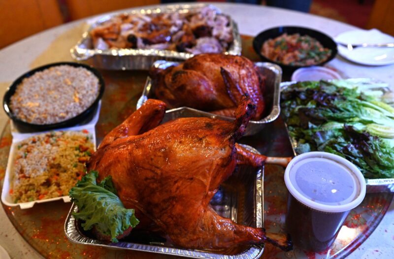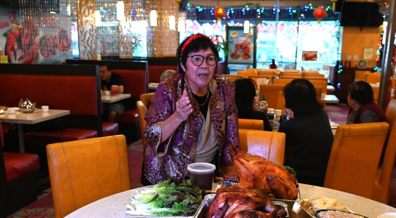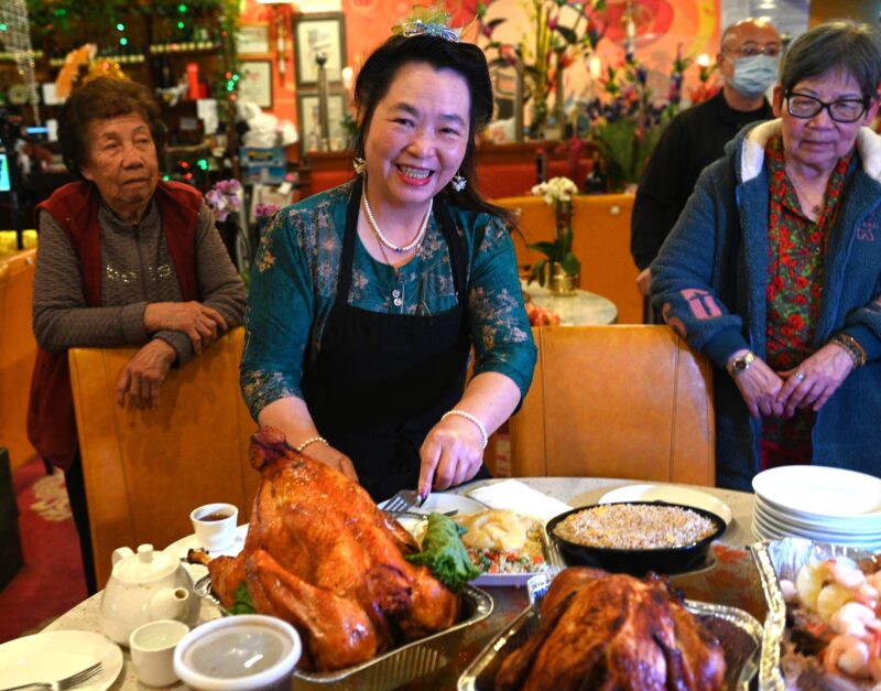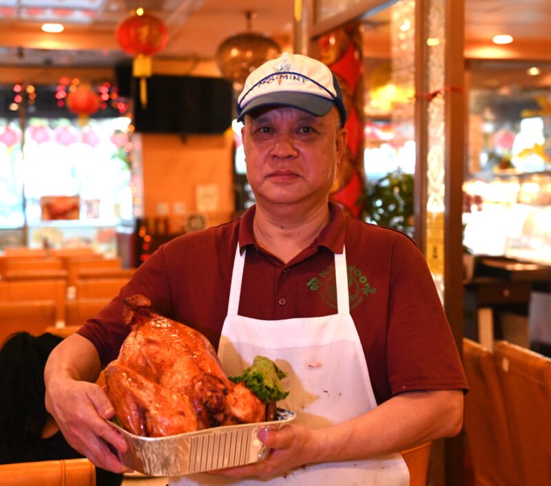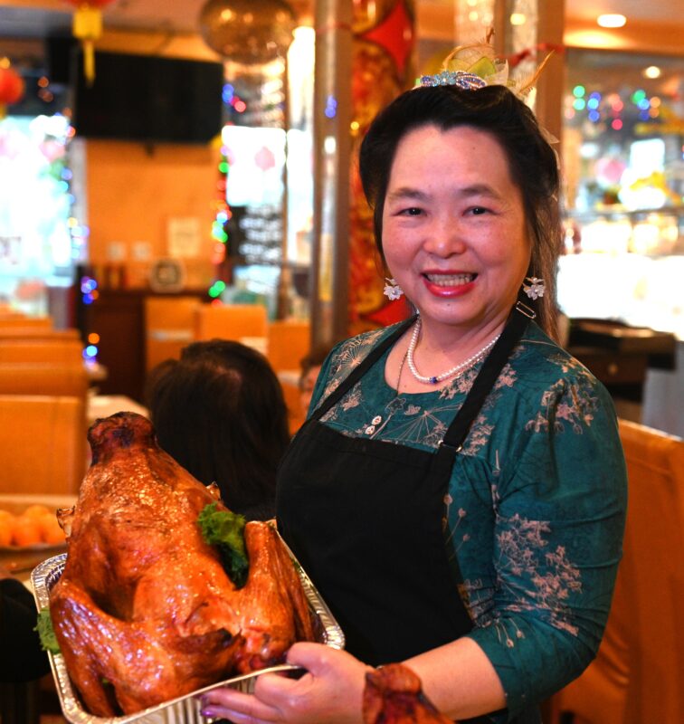 黄师傅现场示范如何处理与剖切大型火鸡,如何以中式宴席方式摆盘与装饰,如何将西方感恩节食材转化成广东传统筵席的呈现方式。参与者在现场欣赏黄师傅娴熟而利落的刀工,与火鸡合照,感受中西文化交融的节庆气氛,让美国感恩节多了一份华埠的温度与味道。
