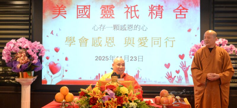 感恩这一年来每一位师兄的护持与付出,是你们让美国灵祇精舍充满温暖与力量。感恩一切众生因缘,让我们得以在此共修共学;更感恩这份珍贵的相遇,让我们在感恩节,以一颗柔软的心,回望这一年的收获与成长。愿在恩师的引领下,我们都能带着感恩与慈悲,把光明与善意带入生活的每一个角落。最后,祝愿恩师法体安康、法轮常转;祝大家感恩节快乐,身心自在,福慧增长。