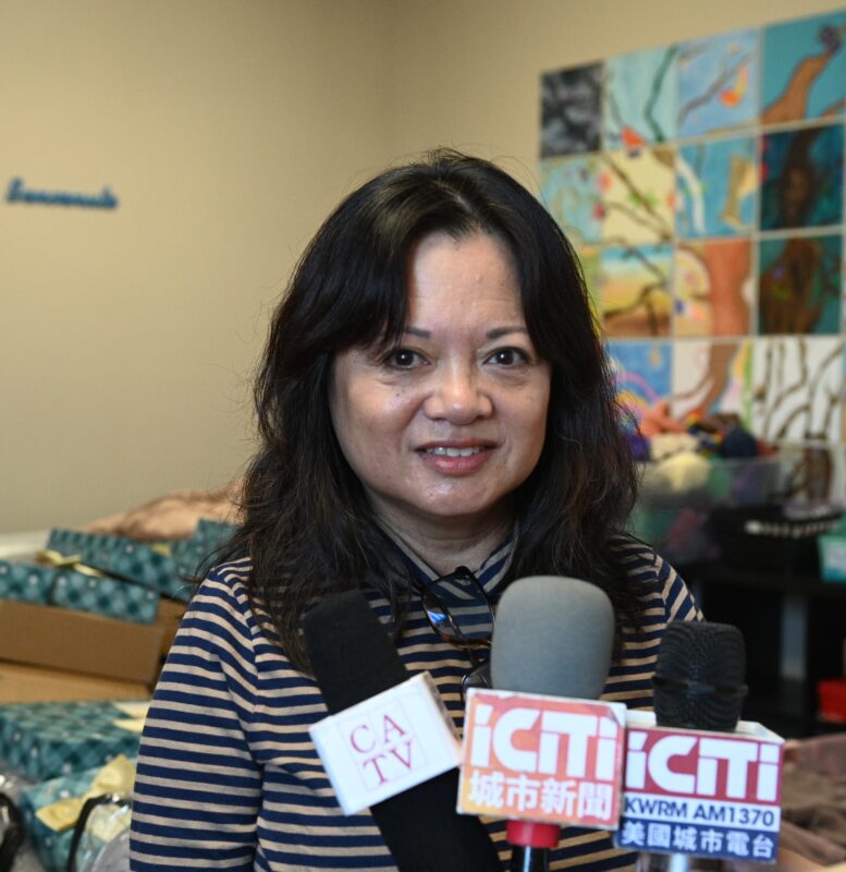 彩虹家暴妇女儿童中心项目负责人 Brenda Maggie告诉记者, 彩虹家暴妇女儿童中心项目负责人 Brenda Maggie 对妇女会的长期支持深表感激。她表示,过去六年中,美国华人妇女联合会始终提供实际而温暖的援助,帮助母亲与孩子们在最艰难的时期感受到希望。许多家庭在离开避难所时,会带走妇女会捐赠的床品与物资,象征着新的开始与力量。她感谢妇女会多年来持续不断的支持,并期待明年再见。