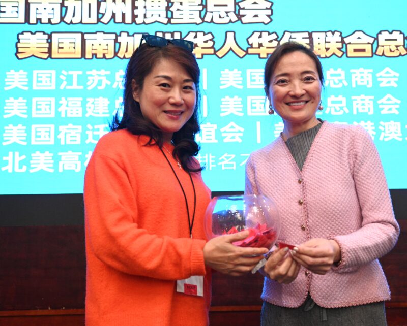抽奖嘉宾、美国华人妇女联合会会长张娴(右)