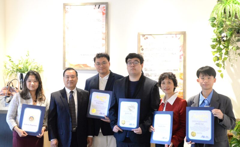 蒙特利公园市市长杨安立代表赵宏向Dong Consulting创始人董智豪等颁发贺状