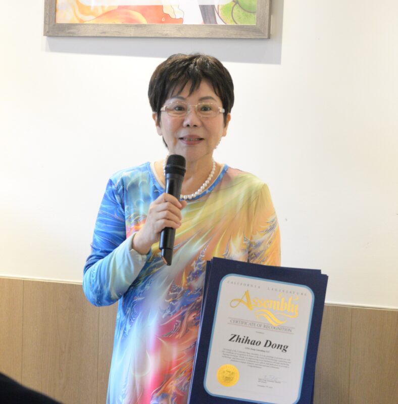 加州众议员方树强代表林连连向Dong Consulting创始人董智豪等颁发贺状