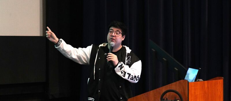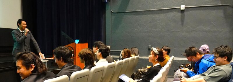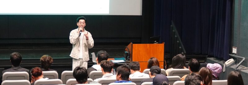 美国领创商业联盟副主席金千旭(Qianxu Jin)作为第二位演讲嘉宾则从技术角度切入,以更实践的方式展示 AI 在现实环境与社区问题中的应用。他通过两项真实的 AI 项目,引导同学们理解人工智能如何真正“落地”到可持续发展情境中。