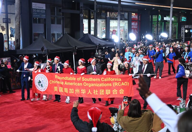 城市新闻11 月 30 日好莱坞报导,第 93 届好莱坞圣诞大游行在星大光道热烈举行,美国华人社团联合会 200 人游行队伍惊艳全场。中国驻洛杉矶总领事馆总领事郭少春大使偕夫人王薇、副总领事郭志强、领侨处主任王琦、侨务领事李俊、美华联主席张勇、理事长江风年、监事长赵林、主席团主席许承武、执行长林连连、美华联执行监事长于忠霞等一起观看了游行。