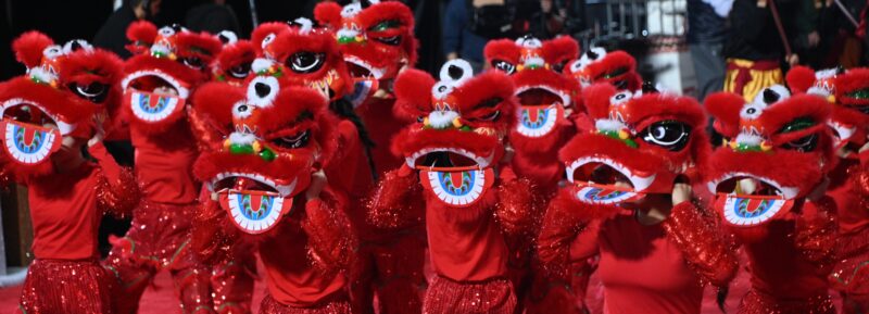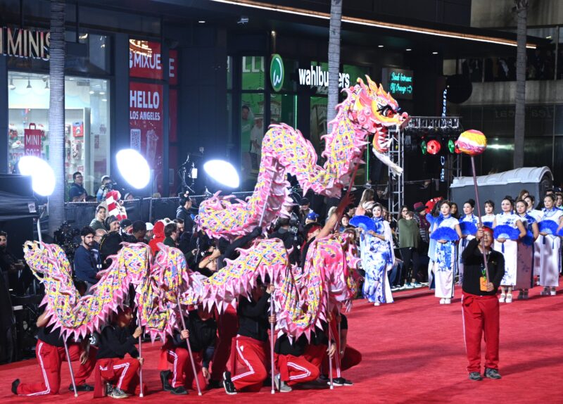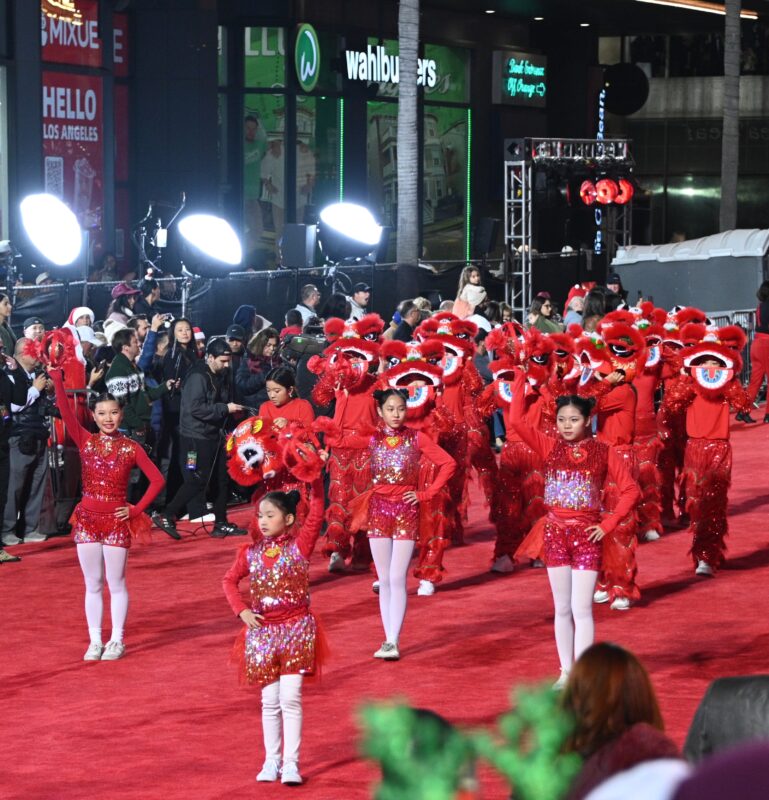 美中文化协会与美国奥淇宏盛舞狮团共同组成的狮子队,50 位青少年组成小狮子表演队。活泼灵动的小狮子带来欢乐与活力,文化的传承从下一代开始。 OGAF 艺术基金会气势恢宏的舞龙队。龙寓意祥瑞、兴旺与力量,是节庆中最具代表性的中华艺术。龙腾虎跃,为好莱坞的夜空带来祝福。