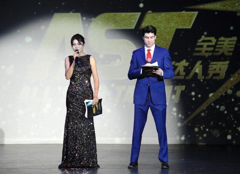 AST达人秀年度优秀代言人Angelina Van Velden与Jiahe Li共同主持比赛环节。Chelsey Lee、Nichole Lee、Phoebe Lee、Bing Xin Zhuang、NuoxiChen、Hantao Wang、Ruochuan xi、Zhaoxi Xing等优秀学生义工组,担当后台重要工作。