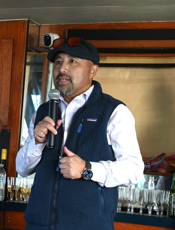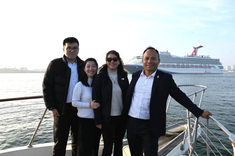 城市新闻12月13日圣彼渚报导,美国浙江电商物流商会2025年圣诞年会在圣彼渚(San Pedro)搭乘白色游船出海举行,在会长孙浩诚(Mike Sun)带领下,四十多位会员在船仓里举行圣诞年会,大家边赏两岸风景,边品尝美味美食,而孙浩诚(Mike Sun)会长作圣诞年会致词,浙江省驻美国商务代表处主任吴航出席年会并致词,受到热烈欢迎。副会长Jacob齐主持活动。
