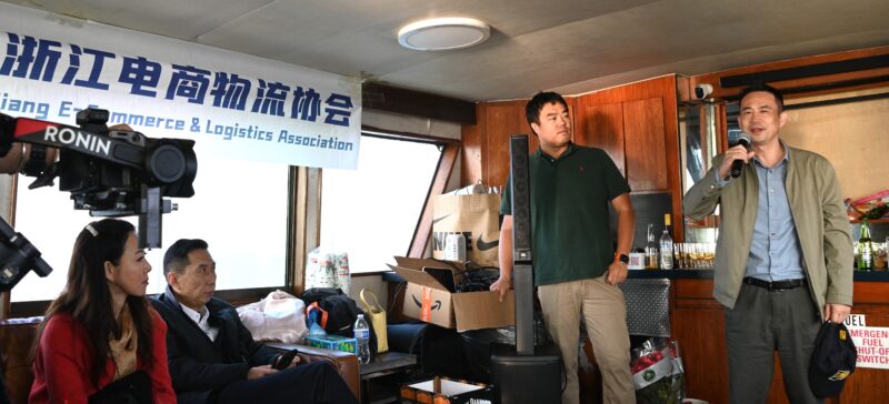 左起:美国浙江电商物流商会会长孙浩诚(Mike Sun)、王道龙
