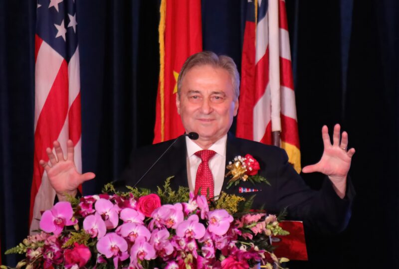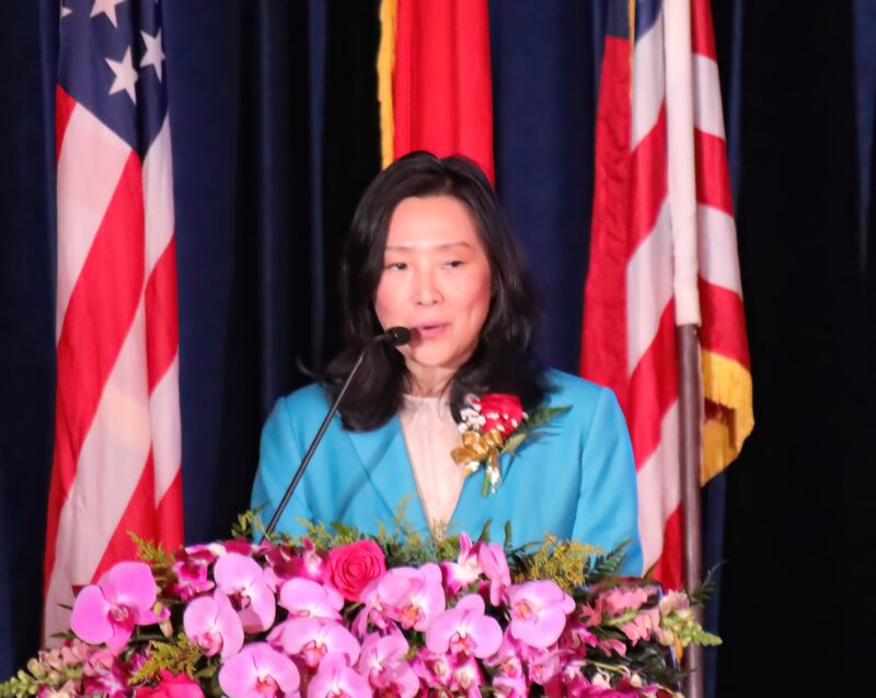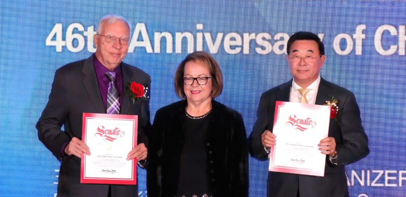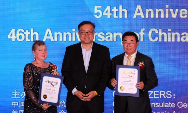 加州参议员Maria Durazo 致辞并颁发贺状,Dell Sweeris(左)、蔡成华(右)