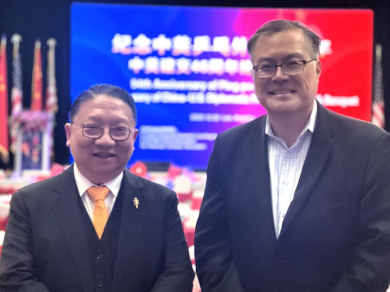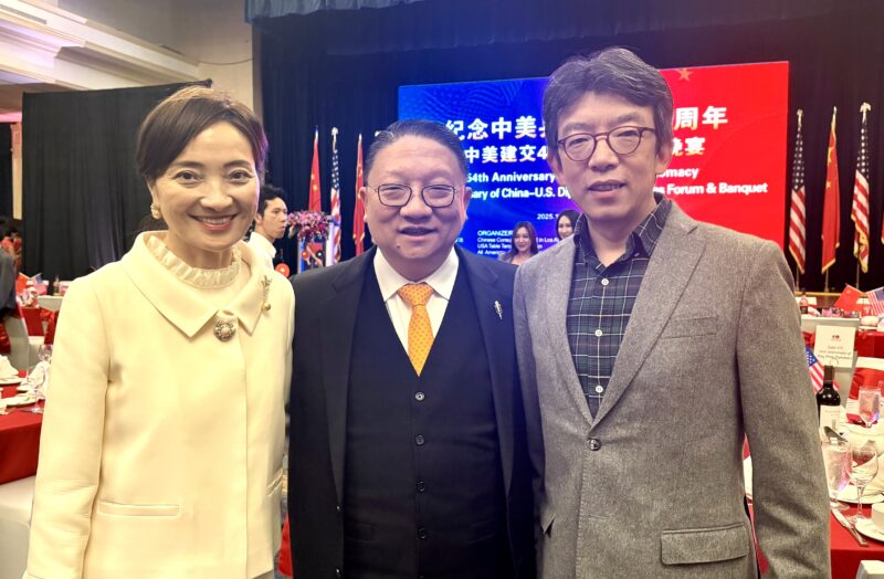 左起:美国鹰龙传媒董事长苏彦韬、加州众议员方树强