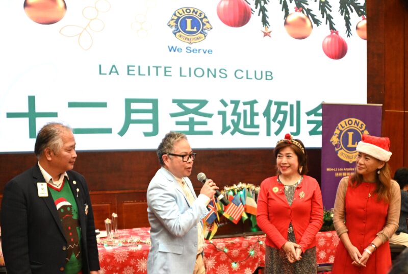 城市新闻12月20日哈仙达岗报道,洛杉矶菁英狮子会在凯悦华达大酒店举办12月例会暨圣诞联合会,并宣布将制作「和平海报毛毯」下月送到老人院,让老人们感受到社区的关爱和温暖。Kevin Chen主持活动
