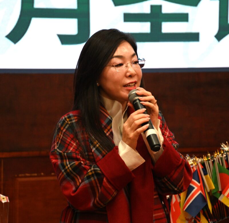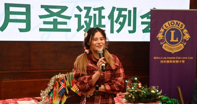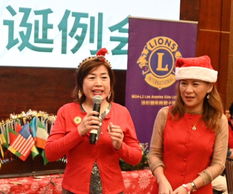 洛杉矶菁英狮子会会长赵宏(Diana zhao)博士(左)致词