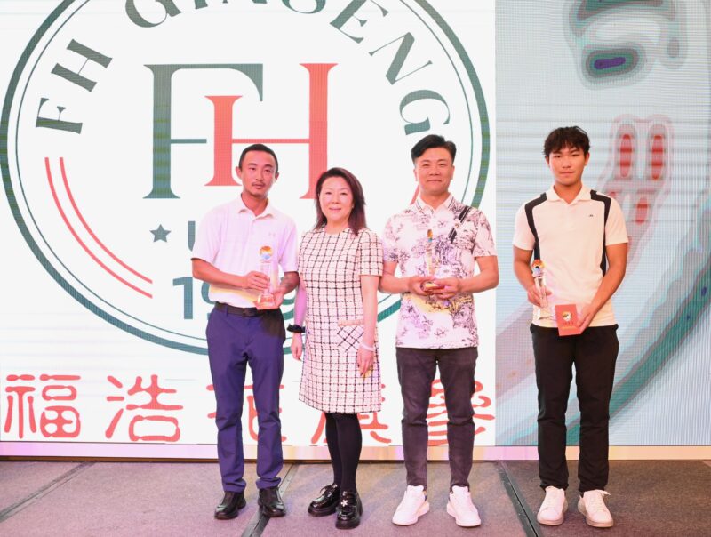 万豪酒店披上圣诞盛装,使颁奖晚宴更灯火辉煌,金光闪闪。优胜球员捧奖杯、拿奖金,其乐融融,埸内一片欢声笑语。更令人兴奋的是现场现金、礼品卡、高尔夫球用品大抽奖,福浩花旗参董事长戚福旭提供十袋高档花旗参供抽奖,幸运儿个个满载而归。