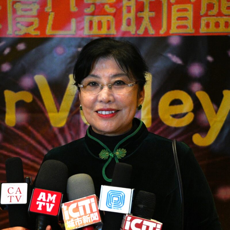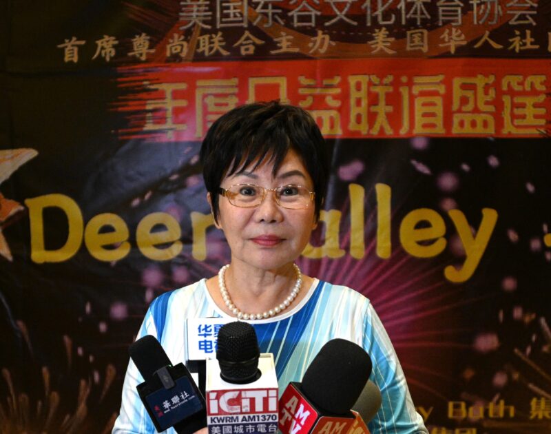 美国华人社团联合会执行长林连连接受各大媒体记者访问