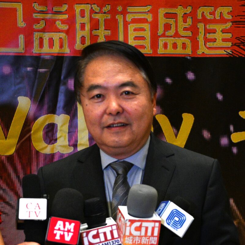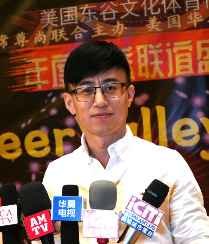 美国华人社团联合会监事长赵林接受各大媒体记者访问