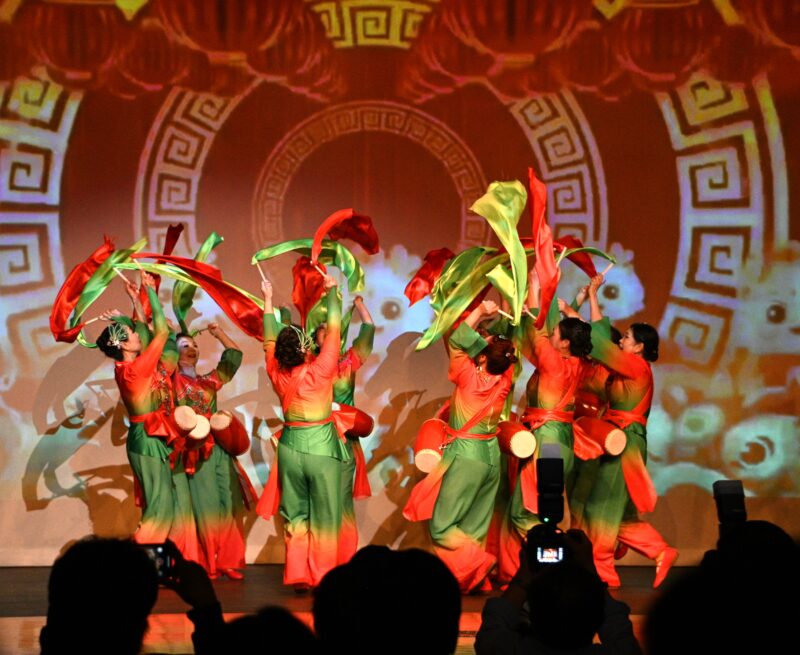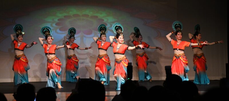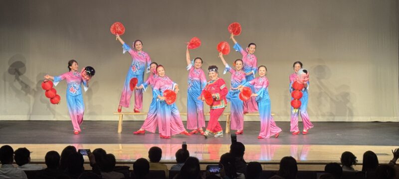 演出在热烈炫丽的华尔兹舞曲中,由宋诚主席联袂Athena刘率先出场,他们步态轻盈,舞姿优美,获得了现场观众热烈的掌声。Vivi刘,Joyce 孙两位美女主持风姿绰约,妙语如珠。东谷文体协会舞团表演不同风格的舞蹈。由Lanny ,Ivy等领衔的喜庆腰鼓舞《好运连连》,《奶奶看戏》喜气洋洋,热烈奔放。由Tracy ,Athena等表演的的藏族舞《我的眼里只有你》,以及由Lynn 徐等健美舞蹈《逐梦未来》,或优雅抒情,或热情洋溢,给观众留下深刻印象。