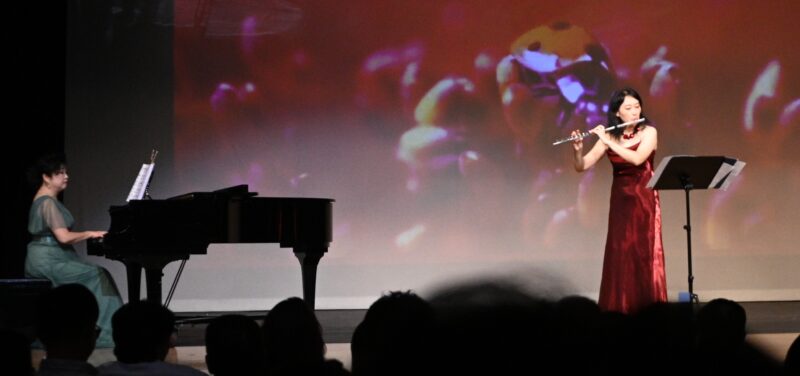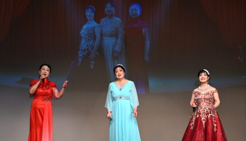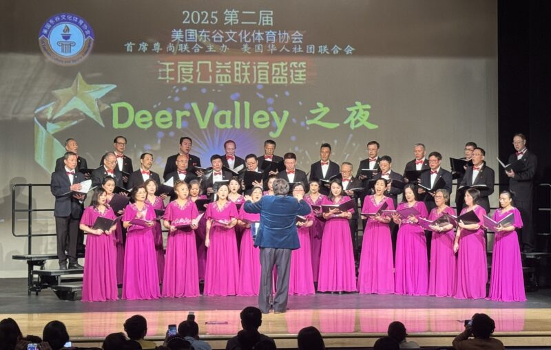东谷文体协会合唱团在宋诚会长指挥下,演唱歌曲《泉水叮咚》《渴望春天》。其中,《渴望春天》宋诚会长在歌曲中特与Athena刘士舞起一段优美的华尔兹。由东谷文体协会合唱团的三大女高音王丽莎,Amy 马 ,黄翎联唱的《茉莉花》《我们的生活充满阳光》《我和我的祖国》也赢得观众阵阵掌声。多个精彩节⽬轮番上演。诗歌朗诵与舞蹈交织情感,钢琴、⻓笛、扬琴等器乐演奏